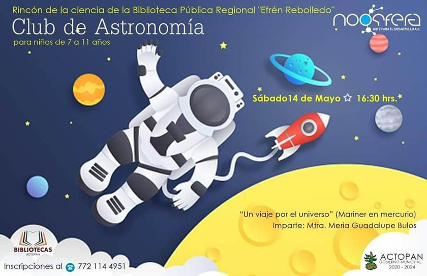 Actopan.- La Dirección de Cultura invitó a toda la ciudadanía actopense, a participar en las diversas actividades culturales que se tienen preparadas para el mes de mayo como lo son: El viernes 13 de mayo no te puedes perder la muestra de productos de talleres Teatro MANS a las 16:00 horas, para el sábado 14 de mayo a las 12:00 horas podrás disfrutar de un concierto Coral, en la casa de la cultura del municipio, además de ser parte del Club de Astronomía en la Biblioteca Efrén Rebolledo a las…