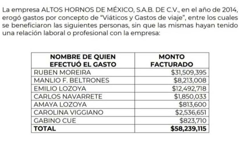 Altos Hornos de México pagó viajes millonarios de políticos