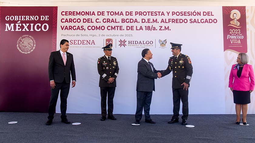 Pachuca.- El gobernador Julio Menchaca Salazar asistió a la toma de posesión del nuevo comandante de la 18/a Zona Militar, el general de Brigada Diplomado del Estado Mayor, Alfredo Salgado Vargas, quien durante este acto protocolario realizó la protesta de bandera correspondiente. Tras la ceremonia, el mandatario reconoció el trabajo y compromiso mostrado por las fuerzas armadas en la entidad, pues recordó que gracias a los esfuerzos coordinados entre los cuerpos de seguridad estatales y federales, durante el último año, fue posible que el estado abandonara el primer lugar nacional…