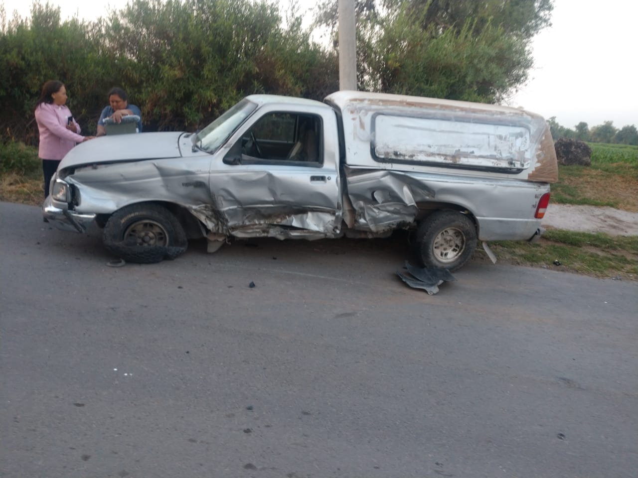 Tlahuelilpan.- La mañana del pasado miércoles 22 de Mayo un fuerte accidente automovilístico se registró en el tramo carretero Tlahuelilpan-Munitepec en el que dos camionetas impactaron violentamente provocando que una de ellas volcara fuera de la carretera. Los vehículos involucrados en el fuerte percance son una camioneta tipo Ford Ranger de color gris, conducida por Paola “N” de 34 años de edad y una camioneta Ford Lincon conducida por Francisco “N”, ambos con domicilio en el municipio de Tlahuelilpan. Luego de ser alertados vía telefónica, de inmediato paramédicos de los…