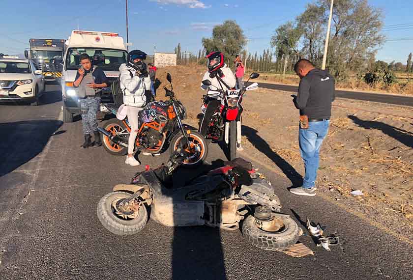 Tlahuelilpan.- La tarde del pasado día domingo 30 de Enero, un masculino de entre 25 y 30 años de edad resultó lesionado al caer de la motoneta en que circulaba por el tramo carretero Mixquiahaula-Tlahuelilpan. El accidente ocurrió a la altura de la localidad de La Loma, perteneciente al municipio de Tlahuelilpan por lo que luego de recibir el reporte de automovilistas que presenciaron el accidente, de inmediato elementos dela Policía Municipal, así como de la Dirección Municipal de Protección Civil acudieron al lugar brindado los primeros auxilios al lesionado…
