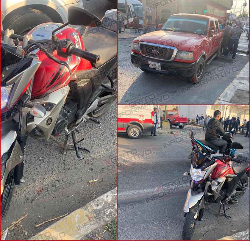 Dos lesionados en choque entre camioneta y una motocicleta