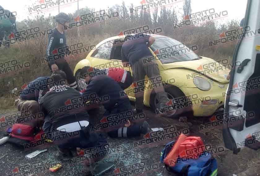 Tlahuelilpan.- La mañana del dia sábado 22, se registró una fuerte volcadura automovilística sobre la carretera estatal Tula Tlahuelilpan, a la altura del lugar conocido como “los manantiales”. Según testigos, el chofer de un vehículo tipo Beetle color amarillo, salió repentinamente de la cinta asfáltica para volcar en al menos una ocasión y quedar en el carril contrario. De inmediato al lugar arribaron elementos de seguridad pública municipal, así como elementos de protección civil y bomberos de Tlahuelilpan, quienes valoraron a dos personas que viajaban en el interior del auto…