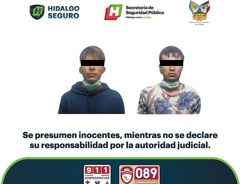 Aseguran en Tezontepec a dos sujetos por presunta posesión de droga
