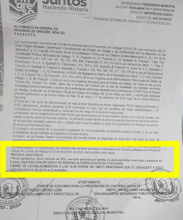 Denuncian que algunos comerciantes no cumplen y reglamentos no actúa contra ellos Progreso de O.- Comerciantes del municipio de Progreso de Obregón han denunciado la forma parcial en la que aseguran, autoridades del municipio y en específico la Dirección de Reglamentos y Espectáculos a cargo de Fredy Isidro León, aplican las restricciones a comercios decretadas con motivo de la pandemia. Explicaron que mediante un oficio de fecha 11 de Enero del 2021, el Comité de Acciones para la Prevención de Contagio Covid-19, del cual forma parte Fredy Isidro León, se…