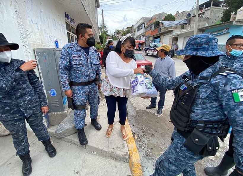 Policía Estatal reparte despensas a damnificados en Tula